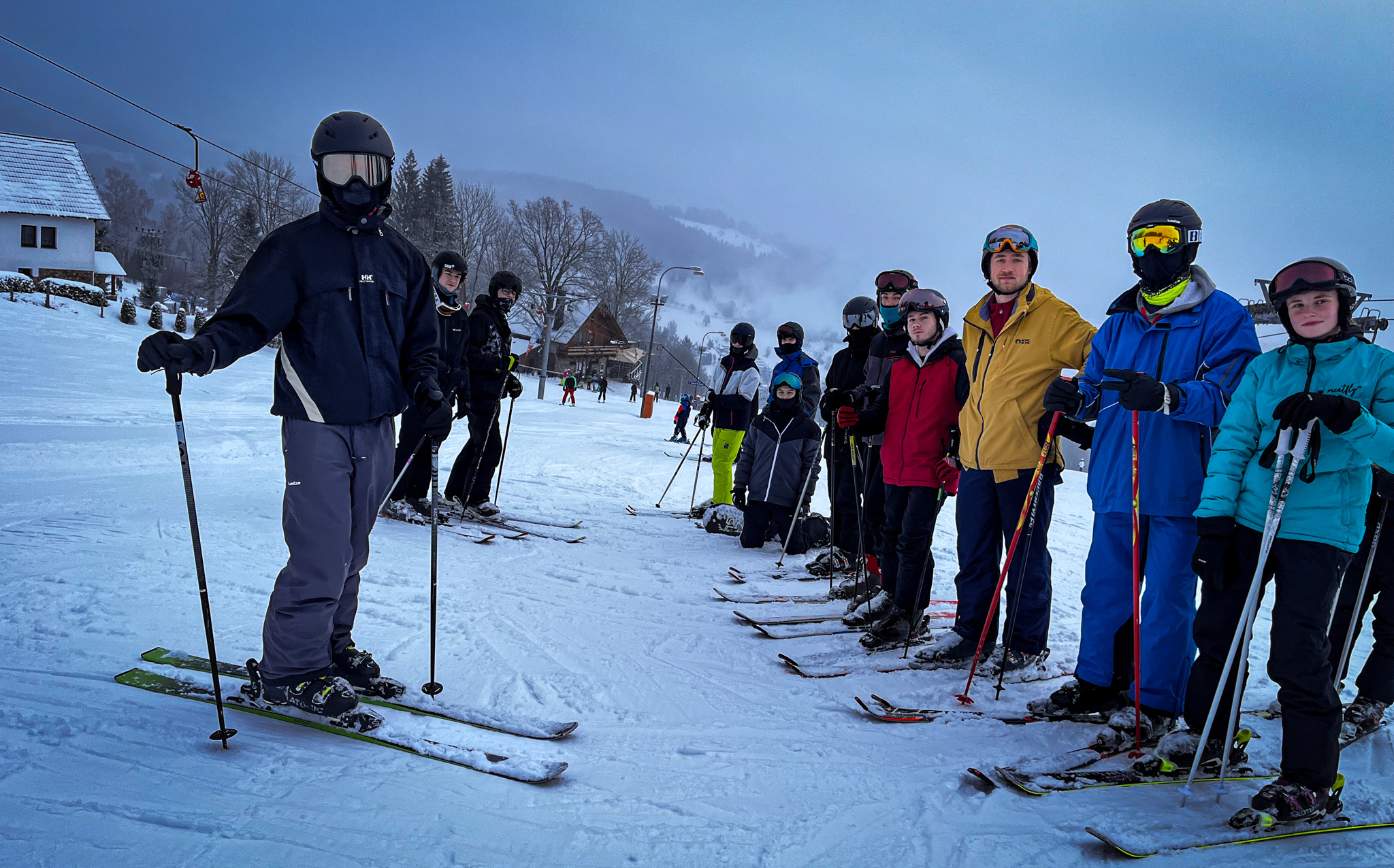 I letos se studenti 2. ročníku vydali na lyžařský kurz, který patřil k největším – zúčastnili se ho žáci tříd 2C, 2P, 2K, 2TA a 2TB. Přestože nás tentokrát počasí nezalilo sluncem, sněhové podmínky byly velmi dobré, a studenti tak mohli strávit maximum času na svahu v areálu Herlíkovice a výrazně zlepšit své lyžařské i snowboardové dovednosti.