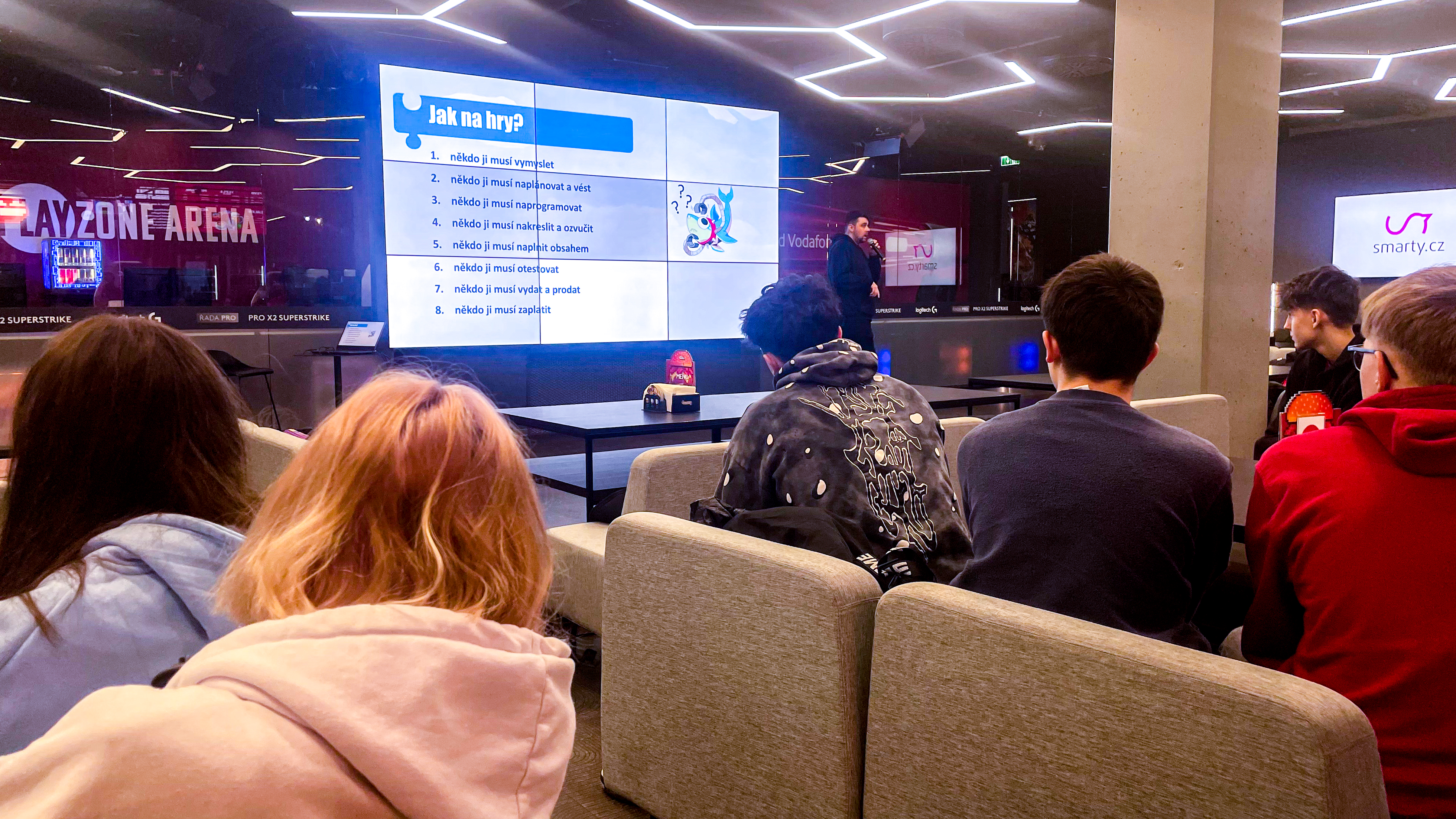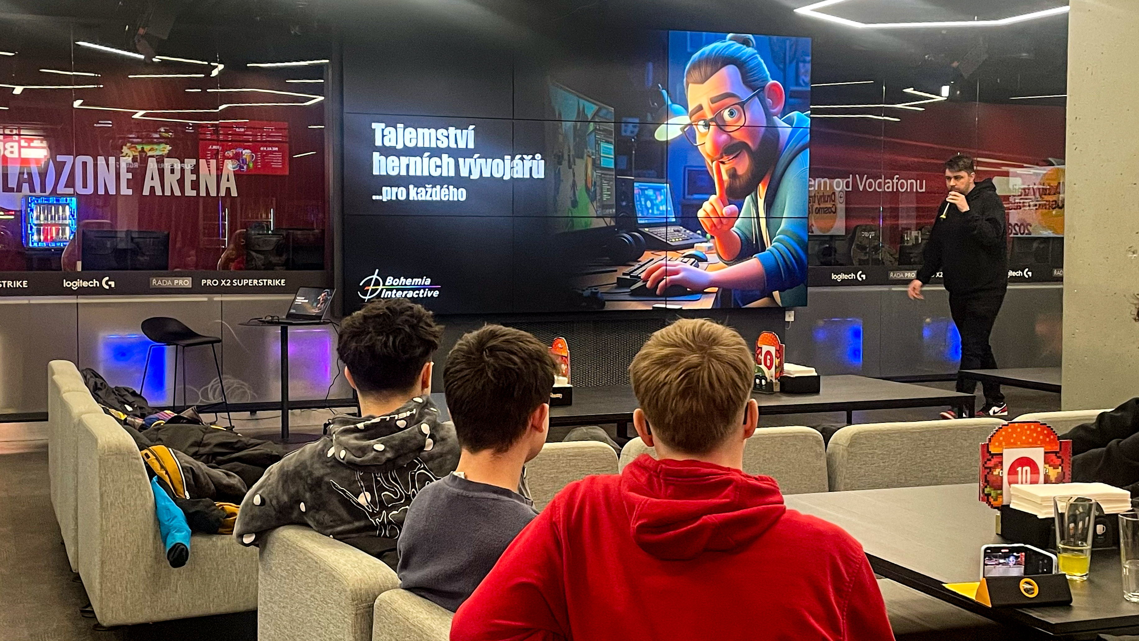 V pondělí 16.2.2026 jsme dostali jedinečnou možnost si jako první vyzkoušet připravovanou hru Cosmo Tales od Bohemia Interactive. Právě spolupráce s výše uvedenou firmou nám zajistila exkurzi zaměřenou na herní průmysl, která se konala v PlayZone Areně na Chodově. Studenti prvních ročníků oborů Herní tvorba a Webové technologie měli možnost zahrát si novou hru a vyslechnout přednášku na téma „Tajemství herního průmyslu“. Během celé akce bylo navíc připravené příjemné občerství a rozhodně jsme tedy nestrádali.