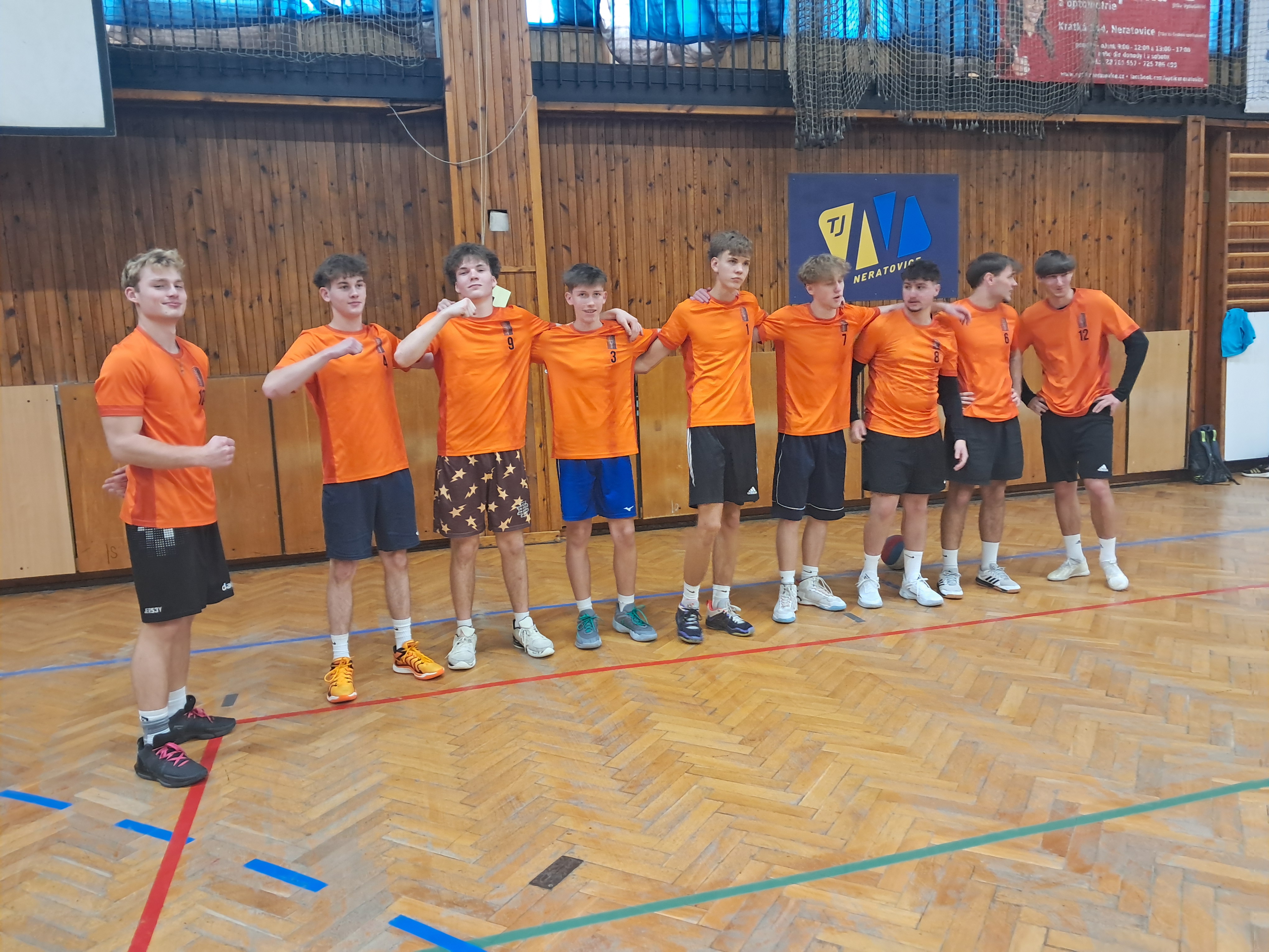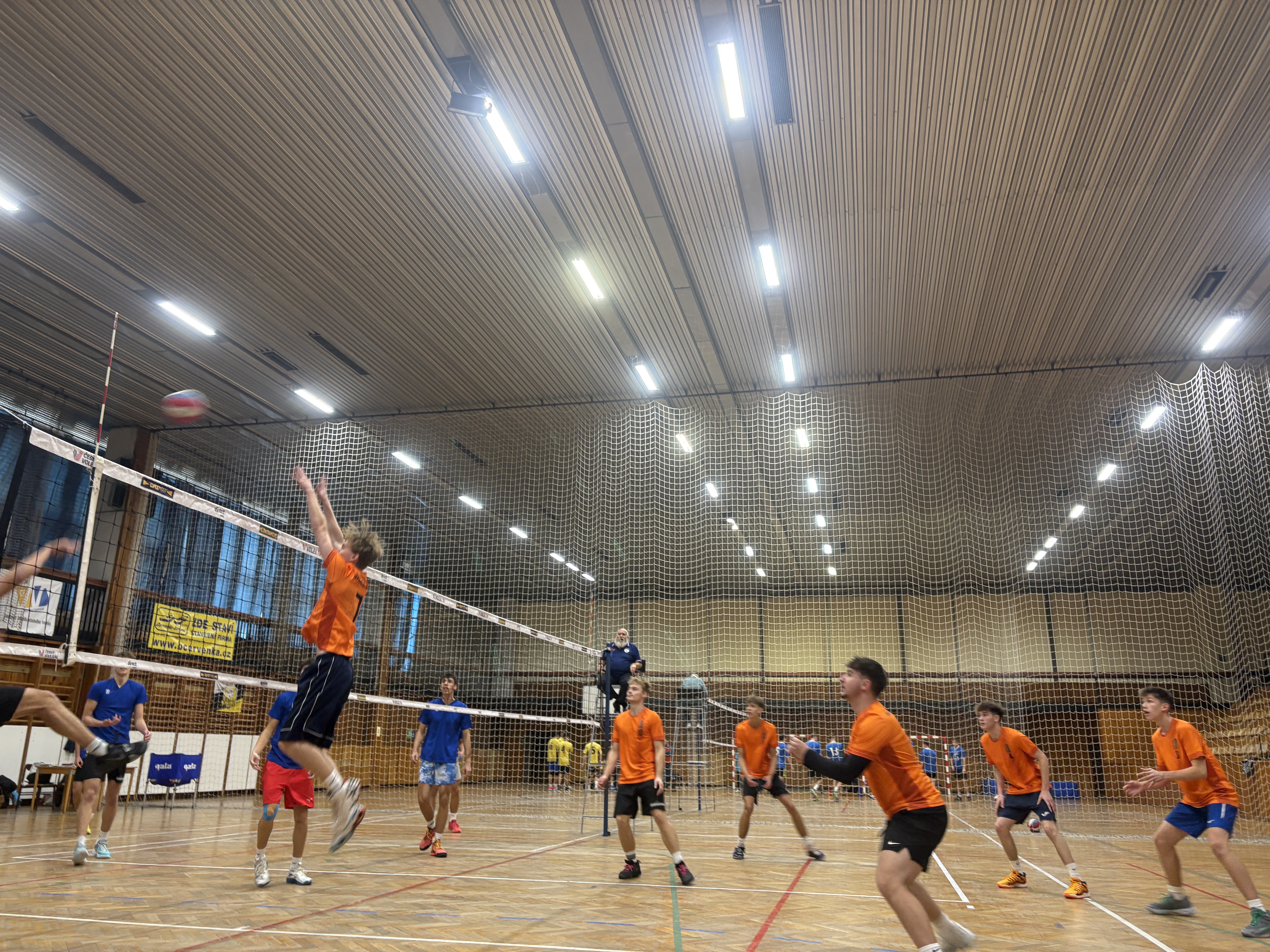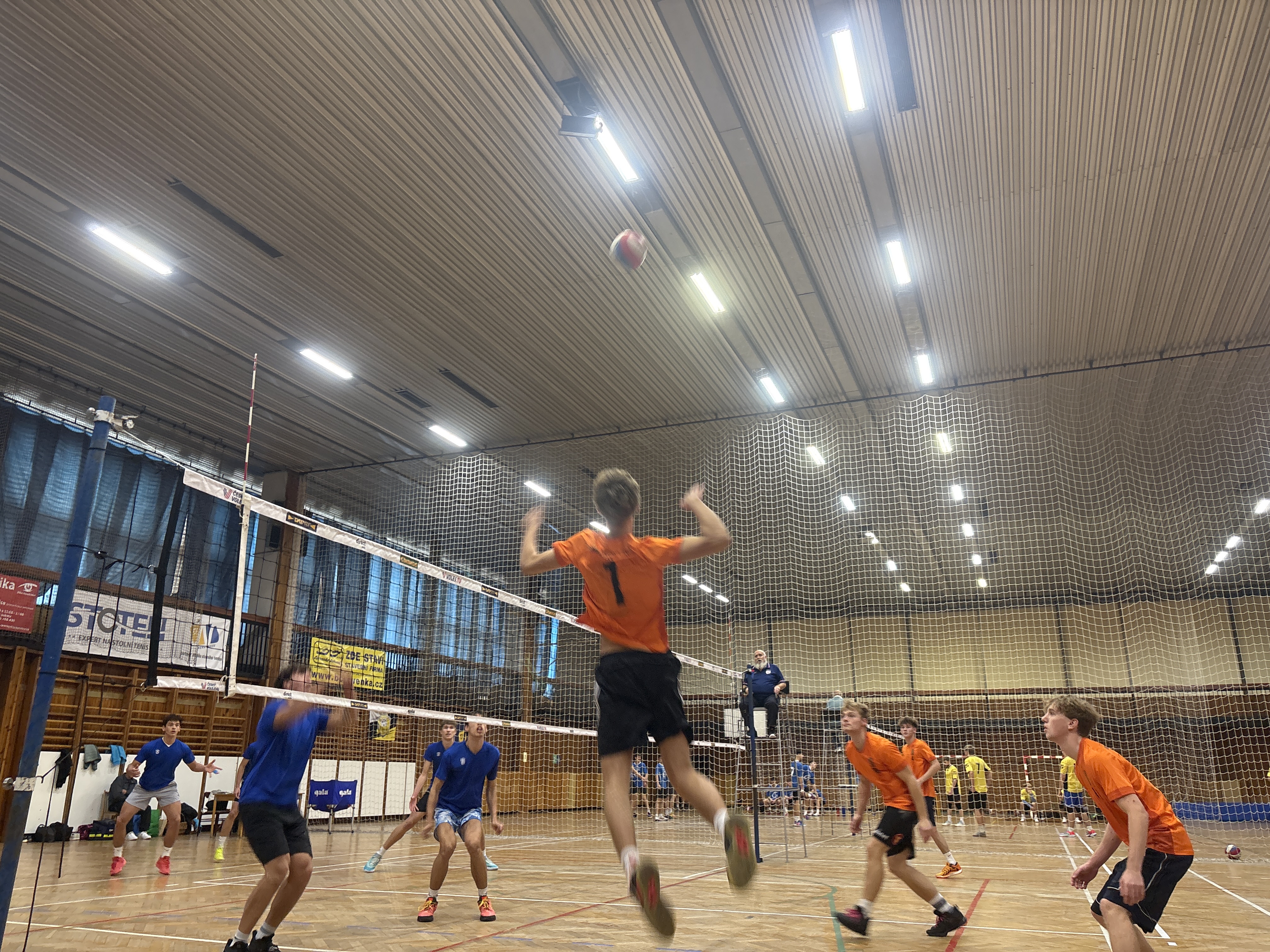 Výběr chlapců ve složení Matěj Mareček, Štěpán Křiva, Karel Kříva, Michal Michálek, Jan Havlík, Kristián Ježek, Maksym Danylevych reprezentoval 4.11. 2025 naši školu na Krajském kole ve volejbalu v Neratovicích.