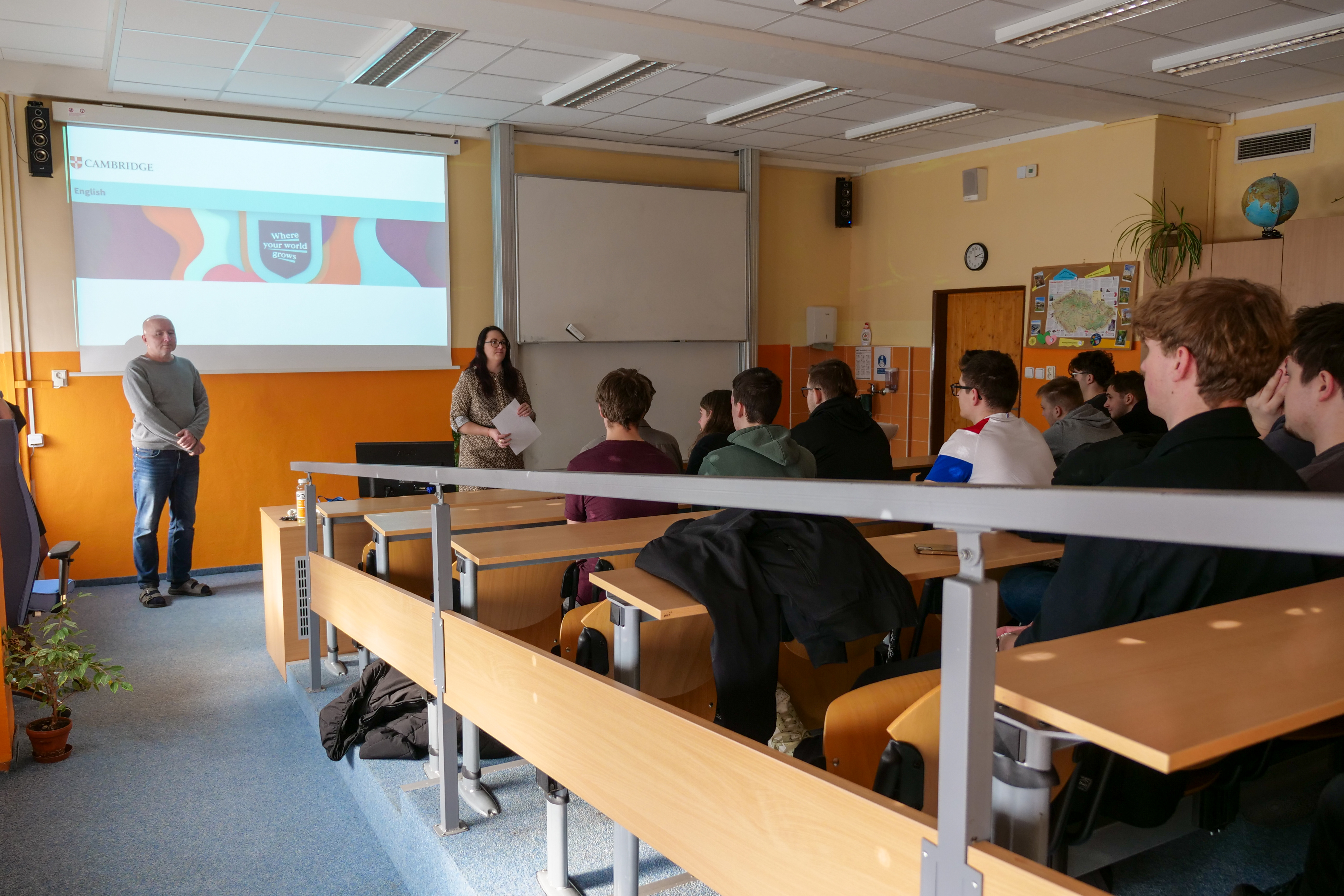 Zkoušky Cambridge English se na naší škole stávají běžnou součástí studentského života, a proto se slavnostní předávání certifikátů konalo již potřetí. Letošní ceremoniál se uskutečnil 26. února za účasti zástupce ředitele školy Mgr. Hynka Kohouta, Ph.D., který úspěšným studentům osobně pogratuloval.