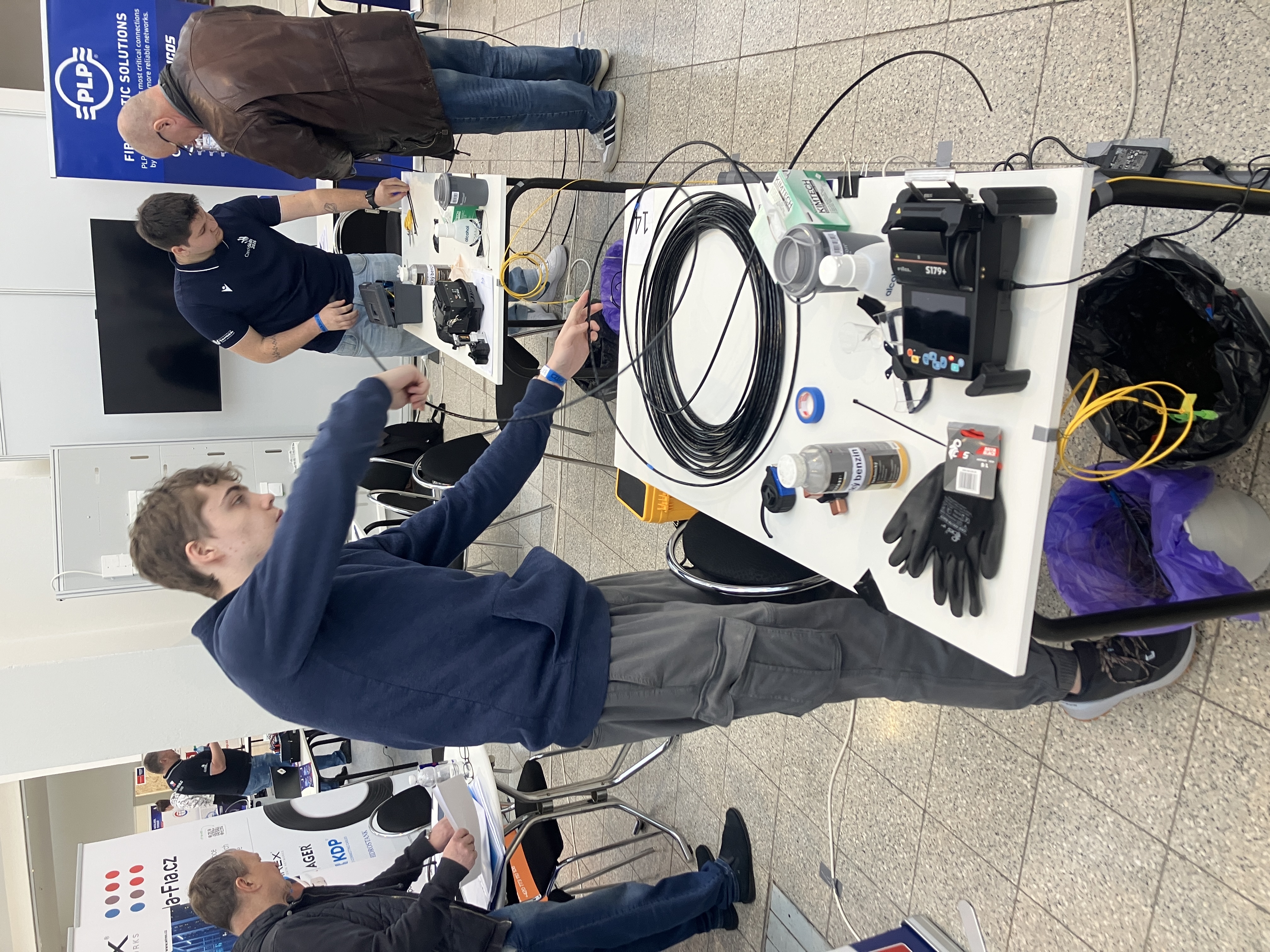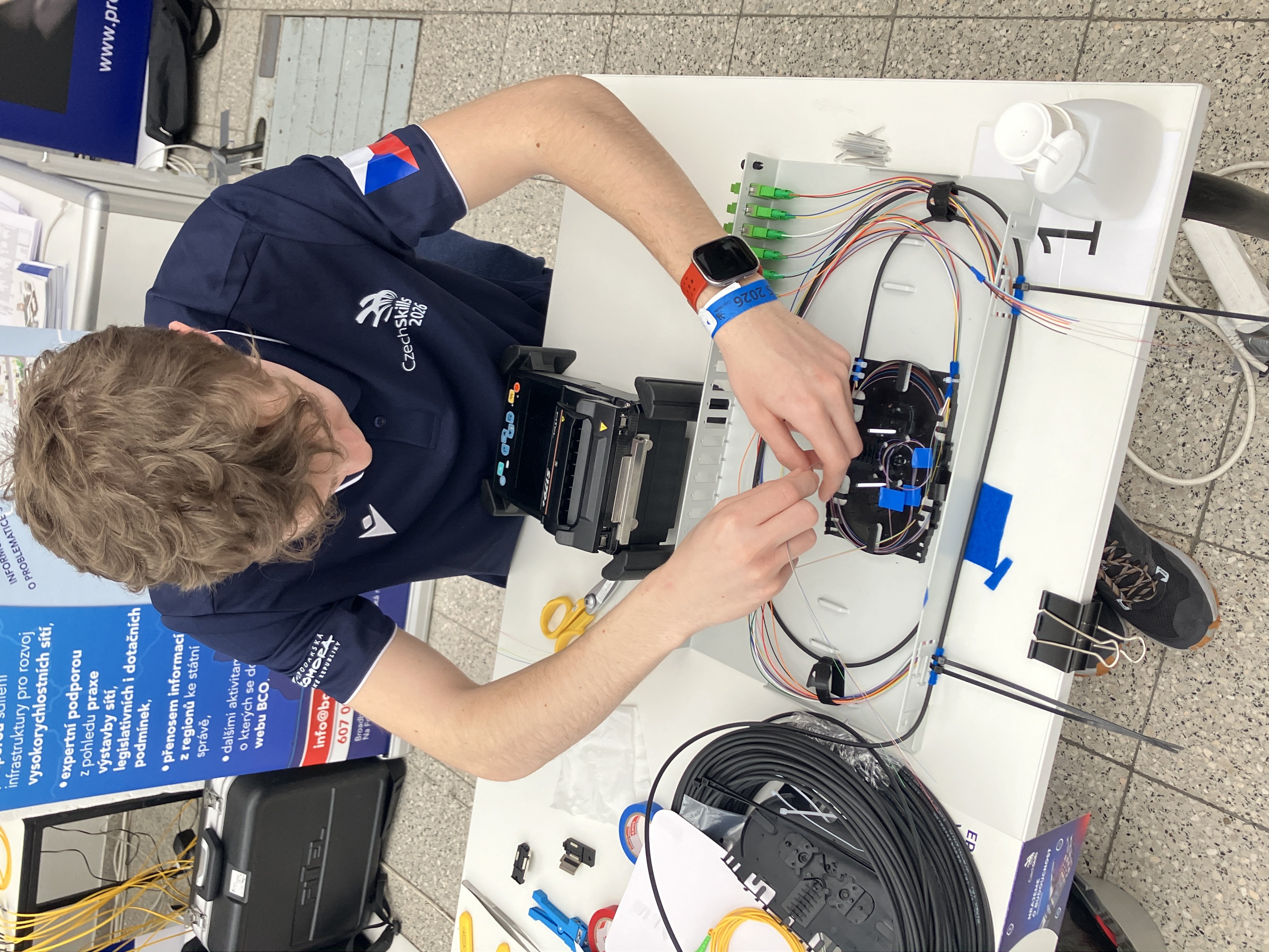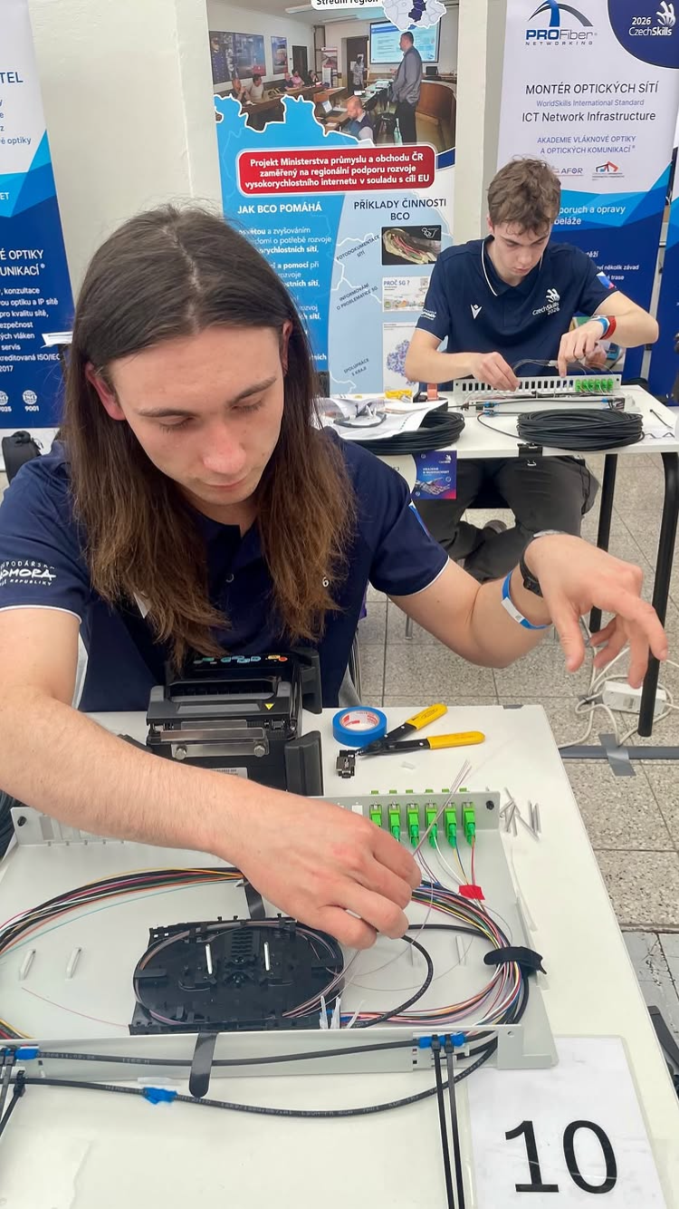 Ve dnech 26.–28. března 2026 se na brněnském výstavišti uskutečnil druhý ročník národního mistrovství odborných dovedností CzechSkills 2026, které Hospodářská komora ČR uspořádala jako součást Stavebního veletrhu. Návštěvníci měli jedinečnou příležitost sledovat soutěžící při práci v reálných podmínkách, a to i pod časovým tlakem. Na tuto prestižní akci, jejíž vítězové mohou postoupit na evropskou soutěž EuroSkills, vyslala svůj tým také naše škola. V kategorii Montér optických sítí nás reprezentovali dva žáci čtvrtého ročníku – a vedli si výborně. Tato soutěžní kategorie patřila k nejrozsáhlejším (zúčastnili se jí žáci SŠ z České republiky a Rumunska) a zároveň divácky nejatraktivnějším v rámci celého mistrovství díky náročnosti a rozmanitosti plněných úkolů.