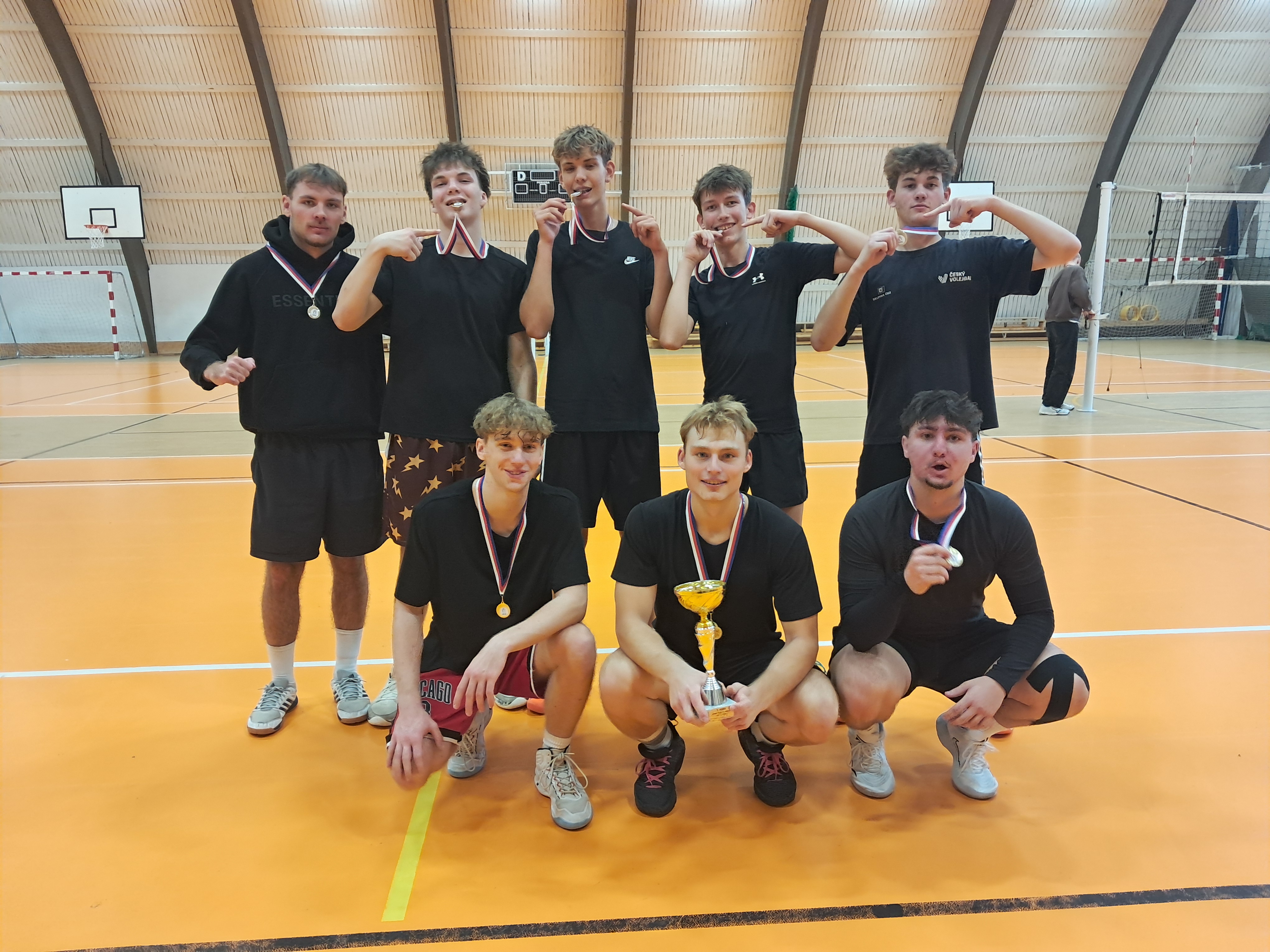 Super výkon, sportovní nasazení a odhodlání vedly tým chlapců k vítězství okresního kola SŠ ve volejbalu, které se uskutečnilo 10. 10. 2025 ve sportovní hale Stap v Borkách. I přes silnou konkurenci ostatních týmů kluci předvedli vynikající hru zejména v souboji o 1. místo s Gymnáziem Kolín. Po vyrovnaných dvou setech si ten třetí, rozhodující, nenechali vzít a výhrou potvrdili postup na krajské kolo, které se bude konat 4. 11. 2025 v Neratovicích. Držte jim palce!