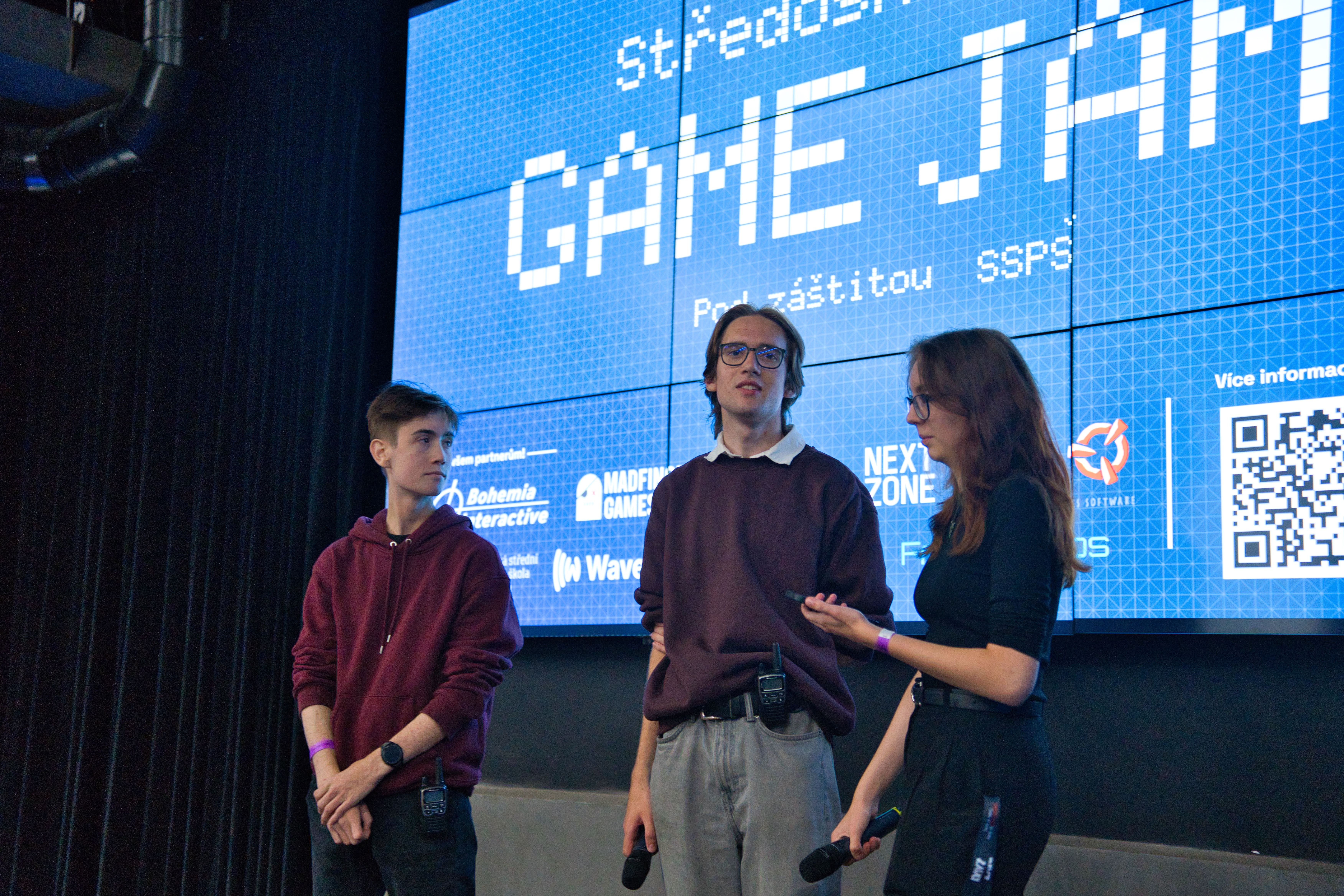 Na konci září jsme se s vybranými studenty zúčastnili letošního Game Jamu 2025 pod záštitou SSPŠ, který se konal v prostoru NextZone v Praze. Game Jam je akce, při které mají účastníci pouhých 48 hodin na vytvoření vlastní počítačové hry. Cílem takovéto akce ale není jen výsledná hra, ale především spolupráce, kreativita, schopnost rychle řešit problémy a nasbírat co nejvíce zkušeností.