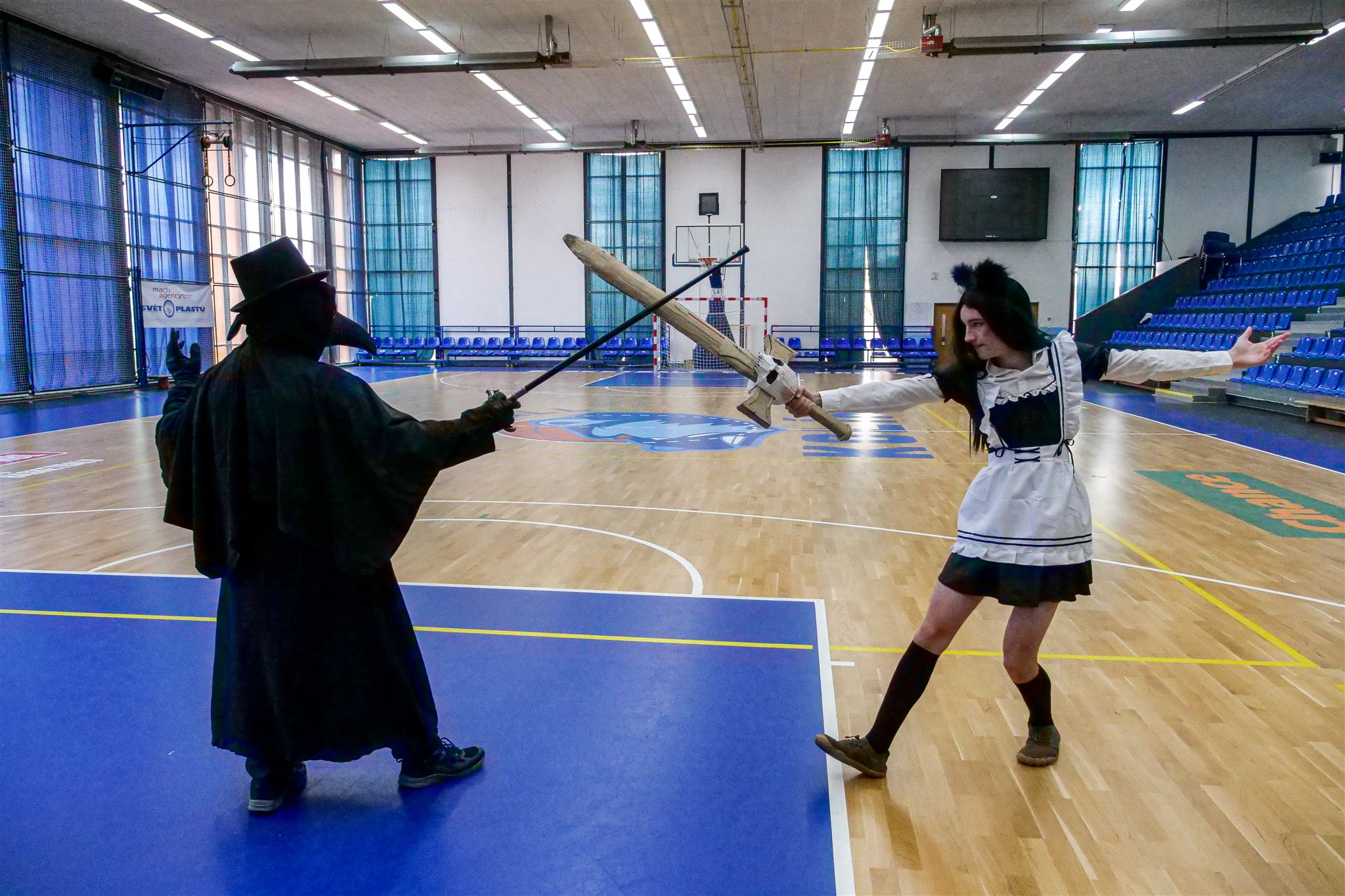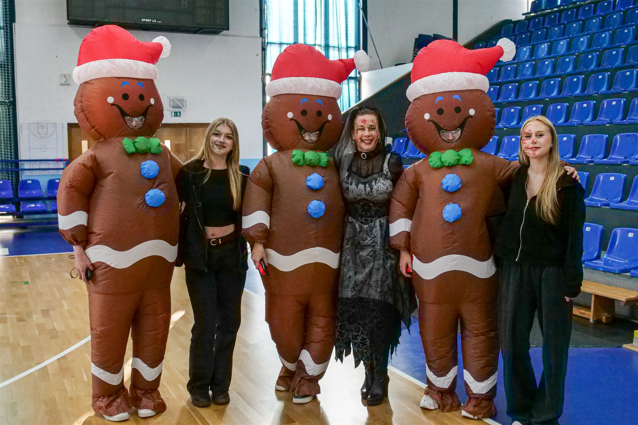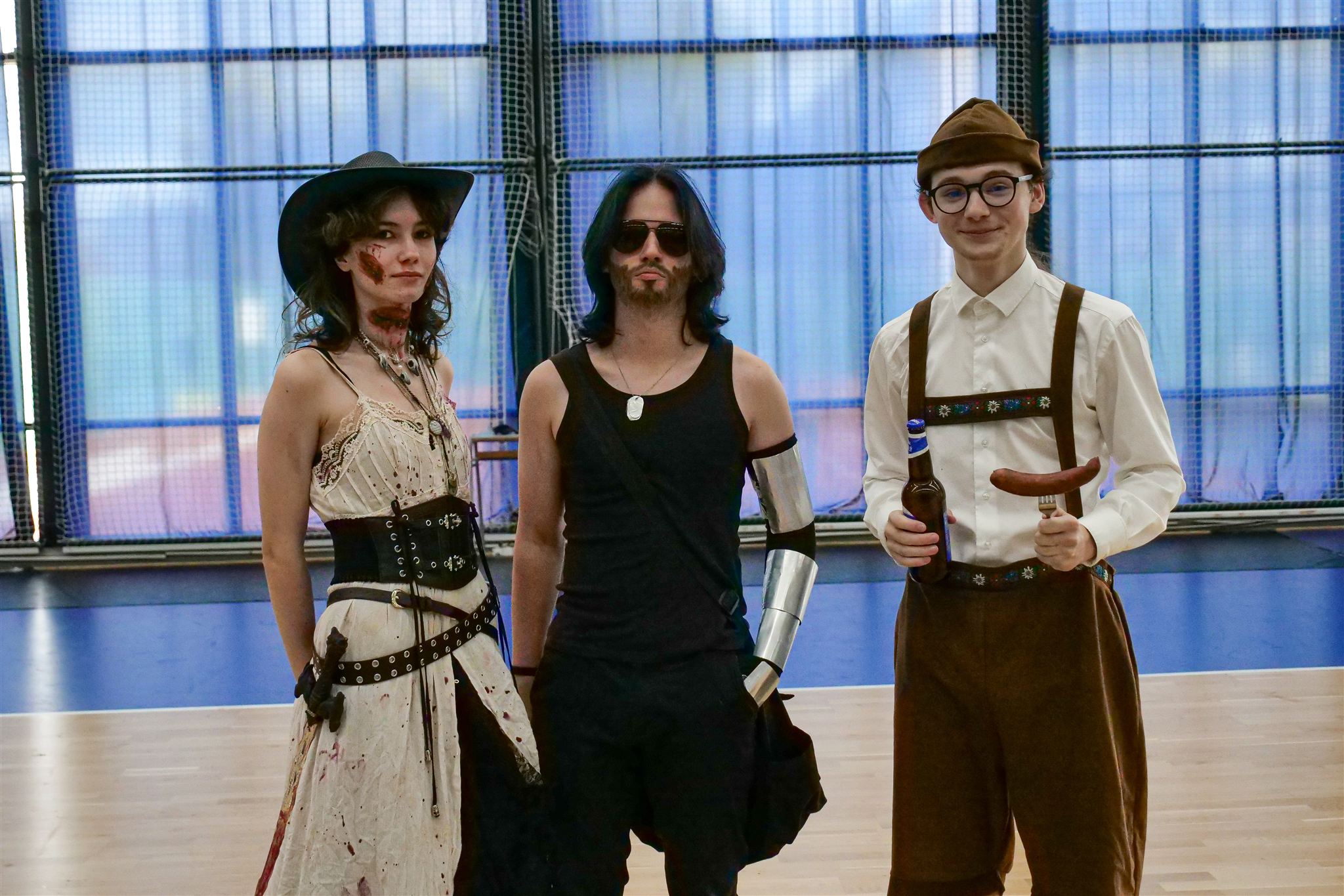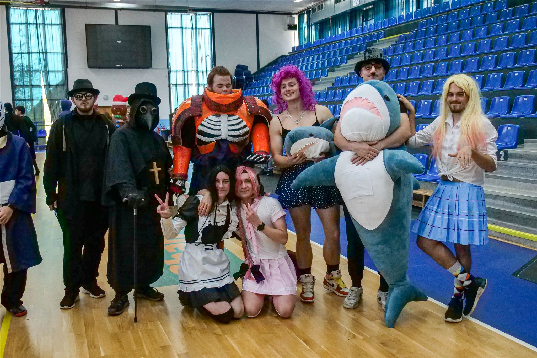 Anglický projektový den na téma Halloween se v naší škole uskutečnil ještě poslední den před podzimními prázdninami. Škola se na celý týden ponořila do Halloweenských barev a na chodbách jste mohli vidět strašidla a příšery všeho druhu. Pro studenty a studentky byly ve vstupní hale připraveny soutěže o pověstnou školní měnu – Spojcoiny. Ten nejbohatší velkotovárník si mohl koupit školní merch a všelijaké bonusy, tedy až na hodnocení „výborně“ z ústního zkoušení z Fyziky. Vzhledem k tomu, že v den focení byla brána mezi živými a mrtvými nejtenčí, na chodbách málokdo poznal, kdo je v kostýmu a kdo ne.